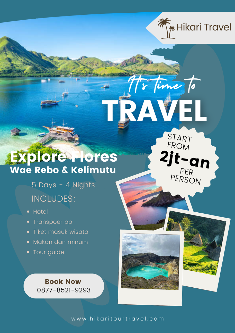 - Pagi hari peserta akan bangun pada pukul 04.00 untuk bergegas menuju ke Kelimutu. Setibanya peserta akan trekking berjalan kaki dengan jalan yang landai selama kurang lebih 30 menit menuju puncak Kelimutu untuk menikmati Sunrise dan landscape danau 3 warna ini. Selesainya peserta akan kembali ke hotel untuk bebersih badan dan persiapan menuju ke Kota Ende dan mengunjungi beberapa tempat bagus di Ende seperti Tempat Pengasingan Bung Karno, Pasar Ende untuk shopping barang-barang khas, dll. Hingga waktunya, peserta akan diantar menuju ke Bandara Ende untuk menempuh perjalanan kembali ke kota tercinta. Semoga perjalanan ini memberi inspirasi dan pengalaman baru bagi peserta dalam berlibur dengan Hikari Travel.